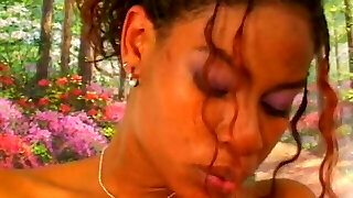 Voluptuous long haired ebony lesbians sucking and frolicking