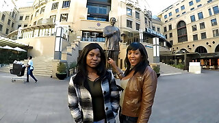 Mischievous African Babes Show Tits For Real Lesbian 3some After Jungle Rave