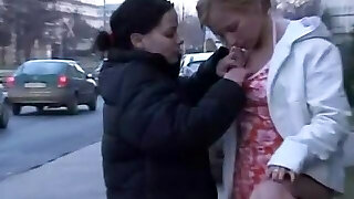 Public Ebony dyke pissed by lezdom in front of voyeurs