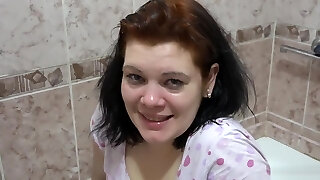Sizzling girlfriend peeing and cumshot