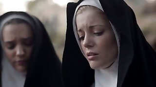 Innocent Mormon lesbians enjoy 3 way with a dildo