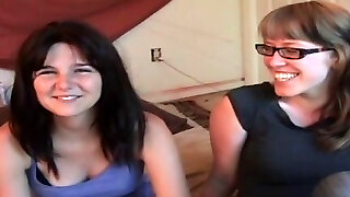 BRUNETTE GLASSES WEARING LESBIAN FUCKS Redhead HARD WITH STRAP-ON