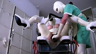 Dyke latex MILF in Three-way analgaping sess with medical tool
